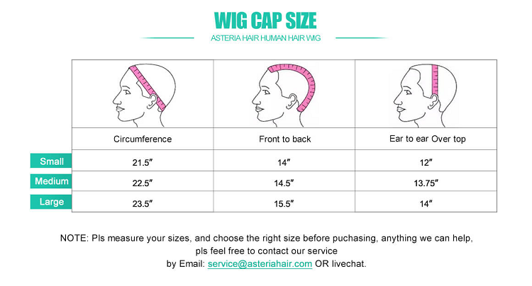Our wigs follow industry standards with < 10mm size variation. Measure your head circuitference (ear-to-ear and nape-to-front) and refer to our sizing chart. Custom sizes are available for precision