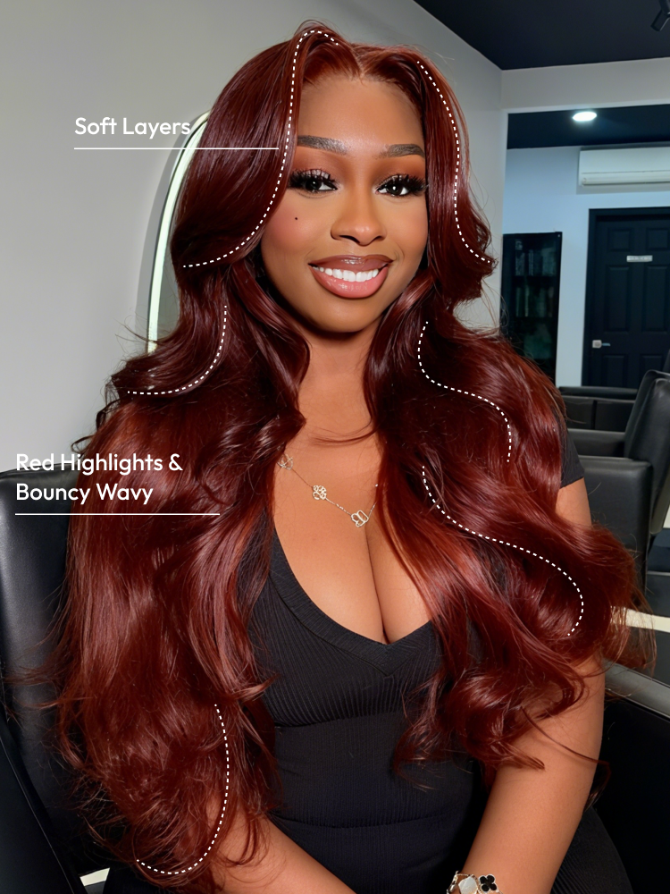 Asteria Hair New Arrival - Copper Red Highlight Ombre Human Hair Wig