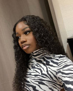 The second raw model wears a 28inch 250 density curly 13x4 HD lace front wig, it's a middle part curly wig hairstyle.