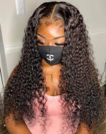 This item is a long curly human hair wig, pre-plucked natural hairline, baby hair premade, natural black hair color. Long curly wigs have 180% density and 250% density, as curly hair is a kind of big hair, 180% density is popular, but if you prefer big hair, 250% density would be your best choice.