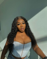 The second raw model wears a 28inch 250 density curly 13x4 HD lace front wig, it's a middle part curly wig hairstyle.