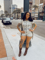 The third model(5'9) with jacket has a side part hairstyle, the hair details: 26inch 180% density curly human hair 13x4 HD lace front wig.