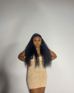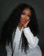This item is a long curly human hair wig, pre-plucked natural hairline, baby hair premade, natural black hair color. Long curly wigs have 180% density and 250% density, as curly hair is a kind of big hair, 180% density is popular, but if you prefer big hair, 250% density would be your best choice.