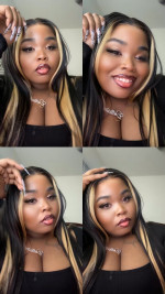 K***This wig is perfect for daily wear! The black base looks natural and low-key, while the peekaboo highlights add a touch of trendiness without being over-the-top. It matches the website photos exactly, so I felt completely at ease when it arrived. The 6x8 lace is breathable and lays flat, and since it's ready to go, I just put it on and head out. A must-have for lazy days!