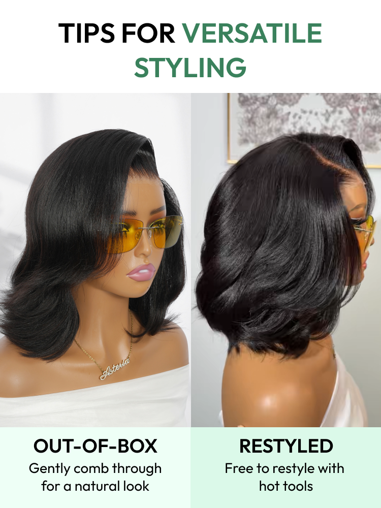 100% human hair wigs use real hair, allowing styling with heat tools and natural movement, while synthetic wigs are pre-styled with plastic fibers. Human hair wigs blend seamlessly with your bio hair and last longer with proper care