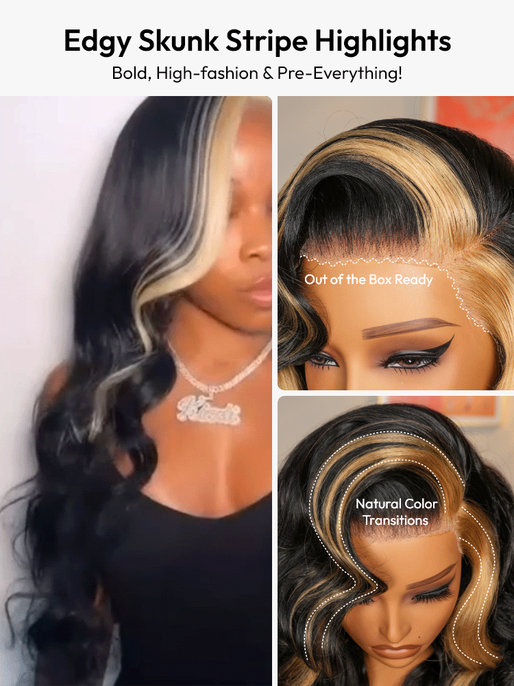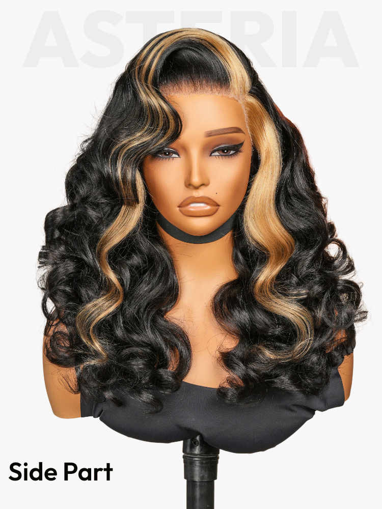 Asteria New Arrival - Skunk Stripe 250% Density Ocean Wave 13x4 Lace Front Ready To Go Glueless Wig